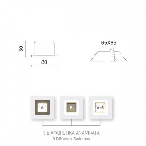 ΤΕΤΡΑΓΩΝΟ ΧΩΝΕΥΤΟ LED ΟΡΟΦΗΣ SMD & COB 3+3W - 3 ΔΙΑΦΟΡΕΤΙΚΑ ΑΝΑΜΜΑΤΑ 5255