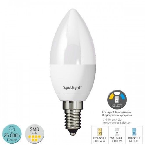 ΛΑΜΠΑ LED SMD 5W Ε14 DIMMABLE ΜΕ ΔΥΝΑΤΟΤΗΤΑ ΕΠΙΛΟΓΗΣ ΤΡΙΩΝ ΔΙΑΦΟΡΕΤΙΚΩΝ ΘΕΡΜΟΚΡΑΣΙΩΝ ΧΡΩΜΑΤΟΣ