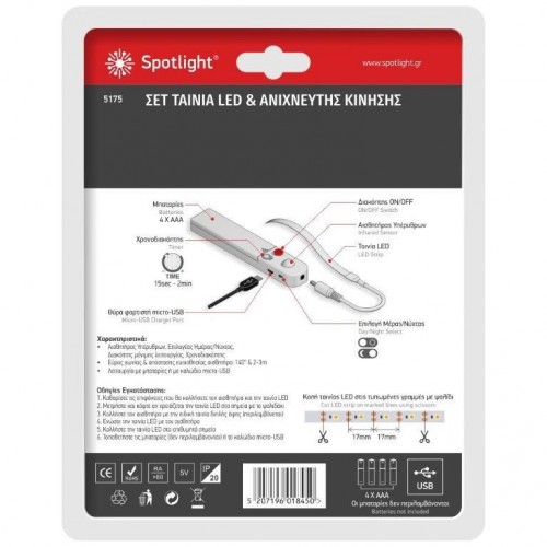 ΤΑΙΝΙΑ LED ΦΩΤΙΣΜΟΥ ΝΤΟΥΛΑΠΑΣ 1m ΜΕ ΑΝΙΧΝΕΥΤΗ ΚΙΝΗΣΗΣ 4000Κ IP20
