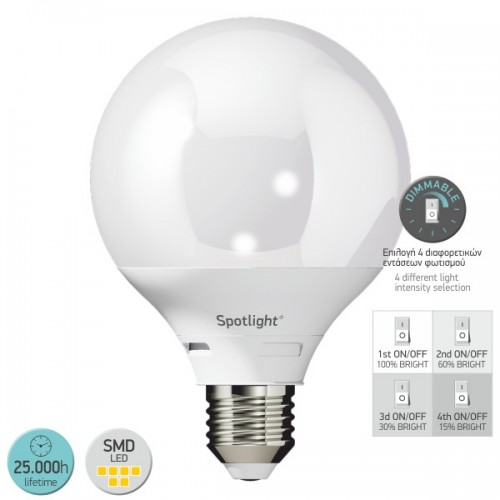 ΛΑΜΠΑ LED SMD 10W 4000K Ε27 G95 DIMMABLE ΜΕ ΔΥΝΑΤΟΤΗΤΑ ΕΠΙΛΟΓΗΣ ΤΕΣΣΑΡΩΝ