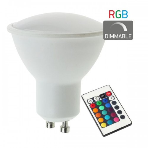 ΛΑΜΠΑ GU10 4.5W LED RGB ΜΕ ΡΥΘΜΙΣΗ ΧΡΩΜΑΤΟΣ ΚΑΙ ΕΝΤΑΣΗ ΦΩΤΕΙΝΟΤΙΤΑΣ ΜΕ ΤΗΛΕΧΕΙΡΙΣΜΟ